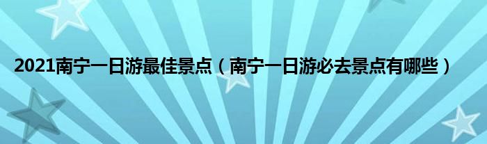 本文,2021南宁一日游最佳景点,南宁一日游必去景点有哪些到此就分享完毕,希望对大家有所帮助。