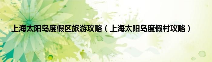 本文,上海太阳岛度假区旅游攻略,上海太阳岛度假村攻略到此就分享完毕,希望对大家有所帮助。