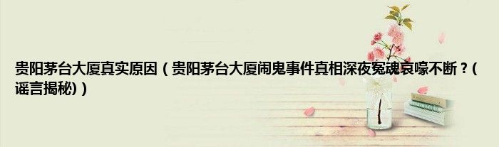 大家好,贵阳茅台大厦真实原因,贵阳茅台大厦闹鬼事件真相深夜冤魂哀嚎不断?(谣言揭秘)很多人还不知道,现在让我们一起来看看吧!