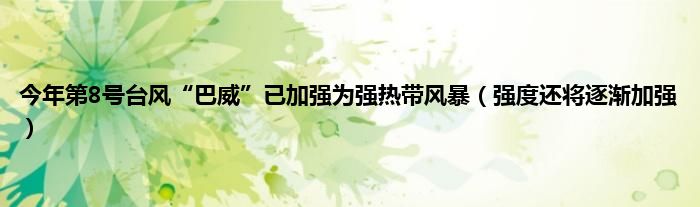 大家好,今年第8号台风“巴威”已加强为强热带风暴,强度还将逐渐加强很多人还不知道,现在让我们一起来看看吧!
