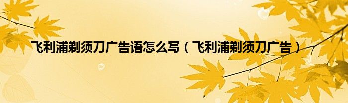 以上就是【飞利浦剃须刀广告语怎么写,飞利浦剃须刀广告】相关内容。