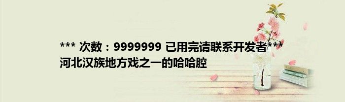 *** 次数:9999999 已用完请联系开发者*** 河北汉族地方戏之一的哈哈腔