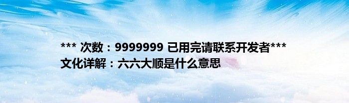 ***次数:9999999已用完请联系开发者***文化详解:六六大顺是什么意思