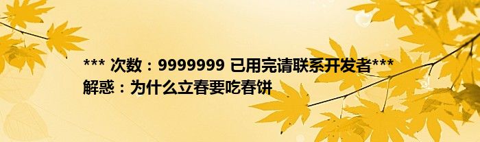 本文*** 次数:9999999 已用完请联系开发者*** 解惑:为什么立春要吃春饼到此分享完毕,希望对大家有所帮助。