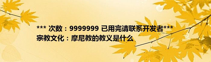 ***次数:9999999已用完请联系开发者***宗教文化:摩尼教的教义是什么