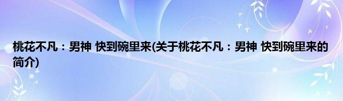 桃花不凡:男神快到碗里来(关于桃花不凡:男神快到碗里来的简介)