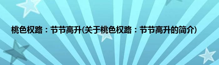 本文关于桃色权路:节节高升的简介就讲解完毕,希望对大家有所帮助。