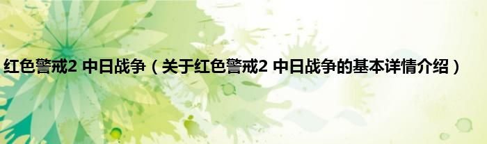 红色警戒2中日战争(关于红色警戒2中日战争的基本详情介绍)