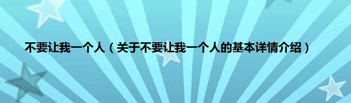 本文关于不要让我一个人的基本详情介绍就讲解完毕,希望对大家有所帮助。