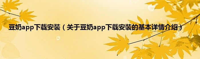 本文关于豆奶app下载安装的基本详情介绍就讲解完毕,希望对大家有所帮助。