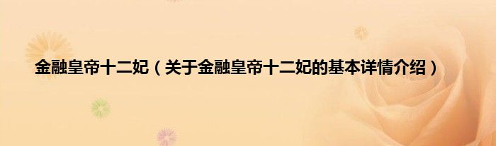 本文关于金融皇帝十二妃的基本详情介绍就讲解完毕,希望对大家有所帮助。