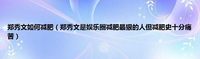 欢迎观看本篇文章,小升来为大家解答以上问题。郑秀文如何减肥,郑秀文是娱乐圈减肥最狠的人,但减肥史十分痛苦很多人还不知道,现在让我们一起来看看吧!