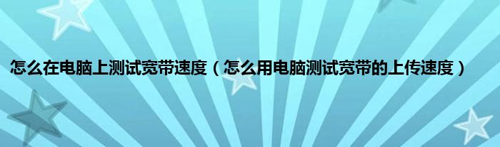 大家好,综合小编来为大家讲解下怎么在电脑上测试宽带速度,怎么用电脑测试宽带的上传速度这个很多人还不知道,现在让我们一起来看看吧!