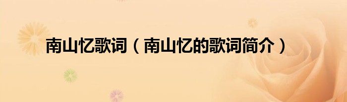 欢迎观看本篇文章,小升来为大家解答以上问题。南山忆歌词,南山忆的歌词简介很多人还不知道,现在让我们一起来看看吧!