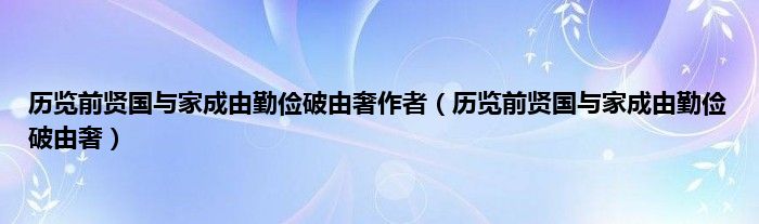 历览前贤国与家成由勤俭破由奢作者(历览前贤国与家成由勤俭破由奢)