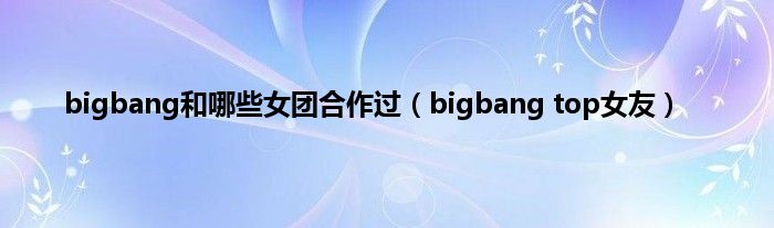 大家好,小问来为大家解答以上问题。bigbang和哪些女团合作过,bigbang top女友这个很多人还不知道,现在让我们一起来看看吧!