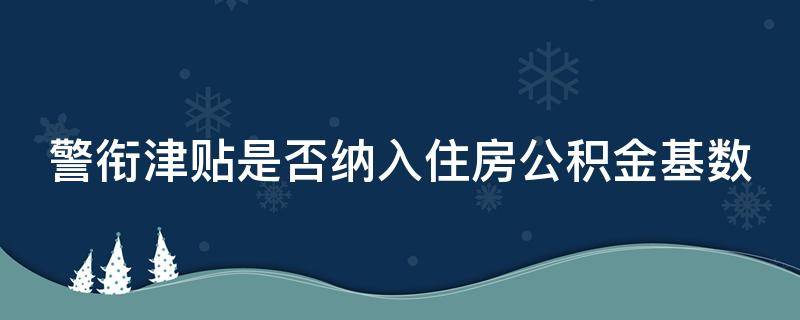 警衔津贴纳入住房公积金基数。警衘津贴属于工资总额的一部分,住房公积金月缴存额为单位职工本人当月工资乘以职工公积金缴存比例。住房公积金,是指国家机关和事业单位、国有企业、城镇集体企业、外商投资企业、城镇私营企业及其他城镇企业和事业单位、民办非企业单位、社会团体及其在职职工,对等缴存的长期住房储蓄。2017年7月1日起,全国所有住房公积金管理中心将按照住建部发布的《全国住房公积金异地转移接续业务操作规程》要求,通过平台办理住房公积金异地转移接续业务。2021年7月1日,中华人民共和国住房和城乡建设部确定了全国住房公积金服务标识,决定即日起启用。