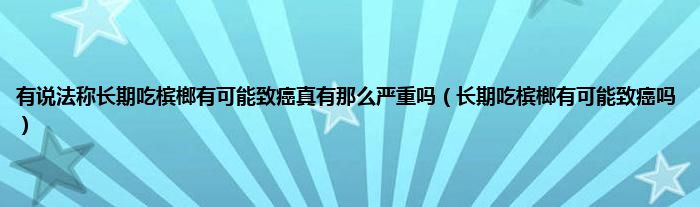 欢迎观看本篇文章,小升来为大家解答以上问题。有说法称长期吃槟榔有可能致癌真有那么严重吗,长期吃槟榔有可能致癌吗很多人还不知道,现在让我们一起来看看吧!