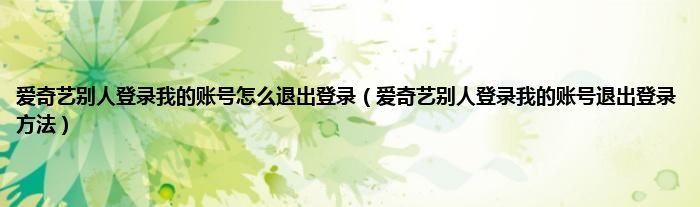 当别人登录我的帐户时,我该如何注销?爱奇艺,别人登录我的账号,退出登录方式。