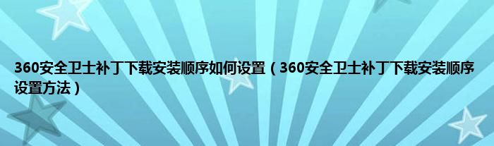 360安全卫士补丁下载安装顺序如何设置(360安全卫士补丁下载安装顺序设置方法)
