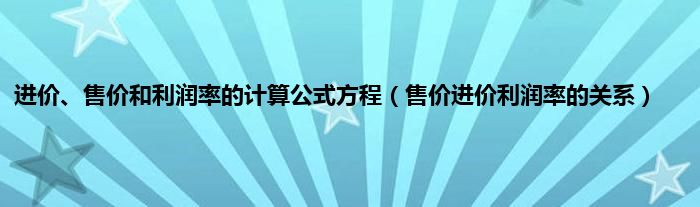 进价、售价和利润率的计算公式方程(售价进价利润率的关系)