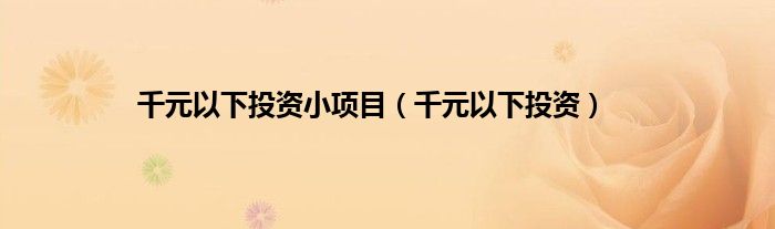 大家好,小问来为大家解答以上问题。千元以下投资小项目,千元以下投资这个很多人还不知道,现在让我们一起来看看吧!