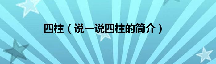 夏弥来为大家解答以下的问题,四柱,说一说四柱的简介,现在让我们一起来看看吧!