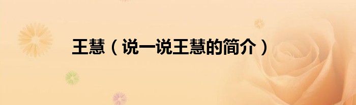 王慧(说一说王慧的简介)