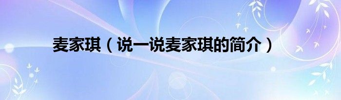 夏弥来为大家解答以下的问题,麦家琪,说一说麦家琪的简介,现在让我们一起来看看吧!