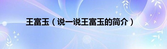 王富玉(说一说王富玉的简介)