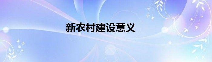 新农村建设意义