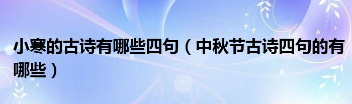 小寒的古诗有哪些四句(中秋节古诗四句的有哪些)