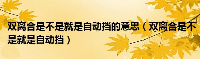 双离合是不是就是自动挡的意思(双离合是不是就是自动挡)