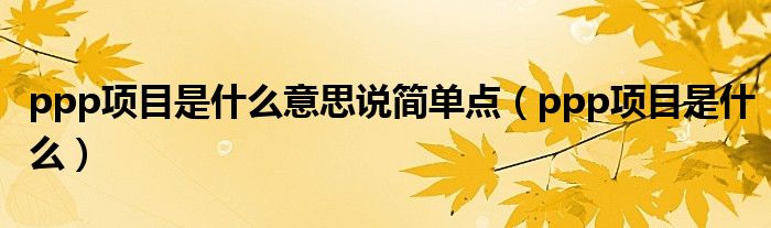 ppp项目是什么意思说简单点(ppp项目是什么)