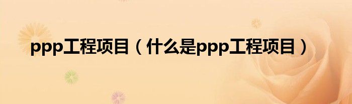 ppp工程项目(什么是ppp工程项目)
