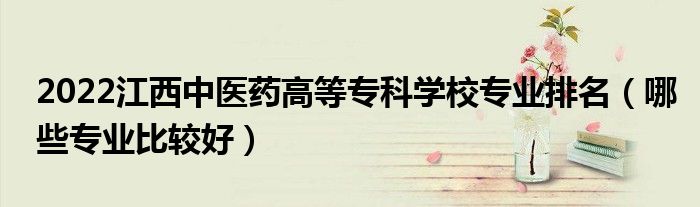 大家好,乐儿来为大家解答以下问题,2022江西中医药高等专科学校专业排名,哪些专业比较好很多人还不知道,现在让我们一起来看看吧!