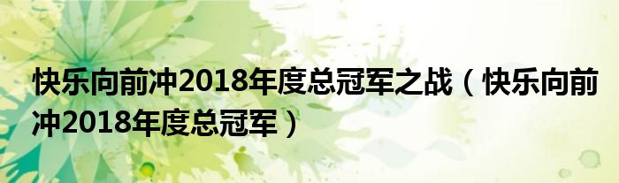 快乐向前冲2018年度总冠军之战(快乐向前冲2018年度总冠军)