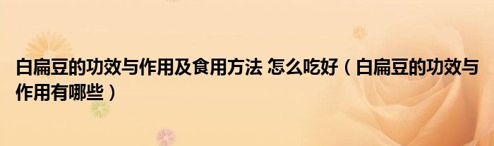 白扁豆的功效与作用及食用方法怎么吃好(白扁豆的功效与作用有哪些)