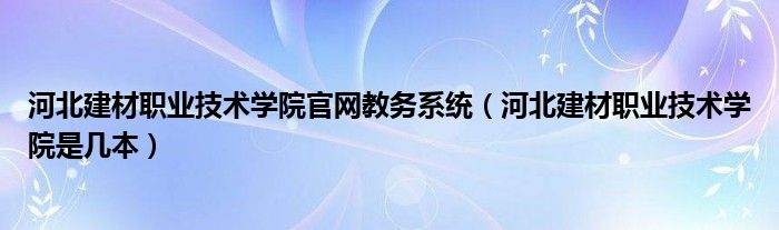 大家好,乐儿来为大家解答以下问题,河北建材职业技术学院官网教务系统,河北建材职业技术学院是几本很多人还不知道,现在让我们一起来看看吧!