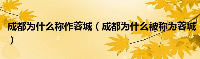 成都为什么称作蓉城(成都为什么被称为蓉城)