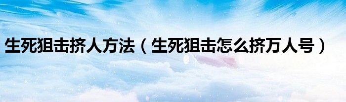 生死狙击挤人方法(生死狙击怎么挤万人号)