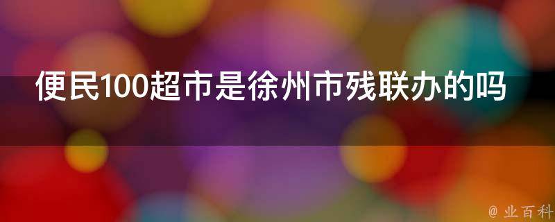 便民100超市不是徐州市残联办的。便民100超市通常是一种连锁或独立经营的零售超市品牌,为消费者提供生活用品、食品、日用品等产品。这些超市的经营者可以是个人、公司或其他商业实体。徐州市残联办指的是徐州市残疾人联合会办公室,负责处理徐州市残疾人事务和服务的机构。它是一个政府部门或非营利组织,与便民100超市没有直接的经营或管理关系。