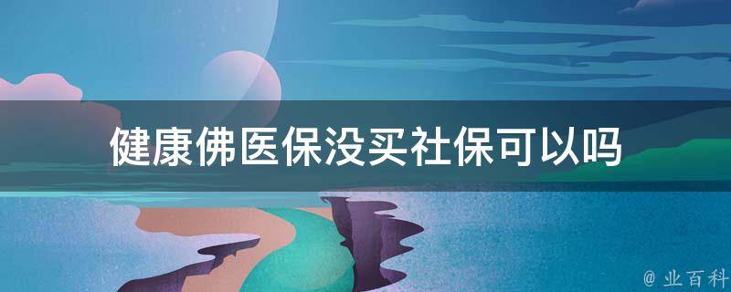健康佛医保没买社保可以,因为健康佛医保和社保是两个不同的保险概念。健康佛医保是某个具体地区或机构提供的一种商业保险产品或计划,为个人提供医疗保险和健康保障。而社保是指由政府设置和管理的一种社会保障制度,为公民提供社会福利和保障。社会保险通常包括医疗保险、养老保险、失业保险、工伤保险和生育保险等。
