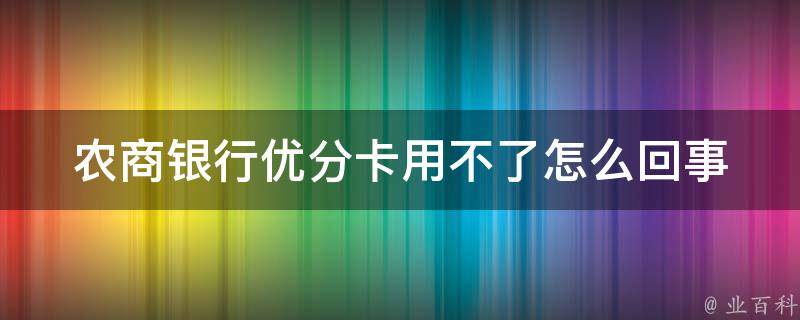 1、卡片问题:确保你的优分卡没有过期或被冻结,以及没有受到损坏或遗失。如果你的卡片任何情况下不可用,你可以联系农商银行客户服务部门,了解卡片状态和解决方式。