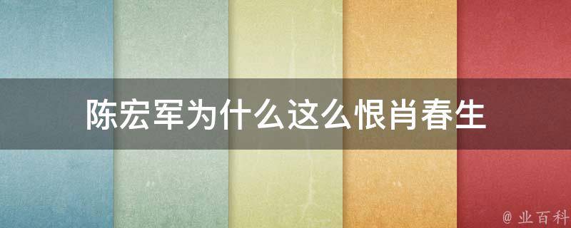 最佳答案陈宏军恨肖春生的原因是他觉得肖春生自作主张,坏他的好事,给他树敌。和肖春生一直追求的公平、正义、报效国家不同,陈宏军一直以来想的都是自己的荣华富贵、锦绣前程,哪怕违章、违纪、违法也在所不惜。同时又嫉妒肖春生,一来就让大家信服,把他当大哥,让他这个官职更高的老大形同虚设。