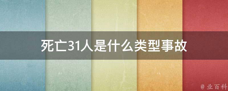 死亡31人是特别重大事故。根据生产安全事故造成的人员伤亡或者直接经济损失,事故一般分为以下等级:特别重大事故是指造成30人以上死亡,或者100人以上重伤,或者1亿元以上直接经济损失的事故;重大事故是指造成10人以上30人以下死亡,或者50人以上100人以下重伤,或者5000万元以上1亿元以下直接经济损失的事故;较大事故是指造成3人以上10人以下死亡,或者10人以上50人以下重伤,或者1000万元以上5000万元以下直接经济损失的事故;一般事故是指造成3人以下死亡,或者10人以下重伤,或者1000万元以下直接经济损失的事故。