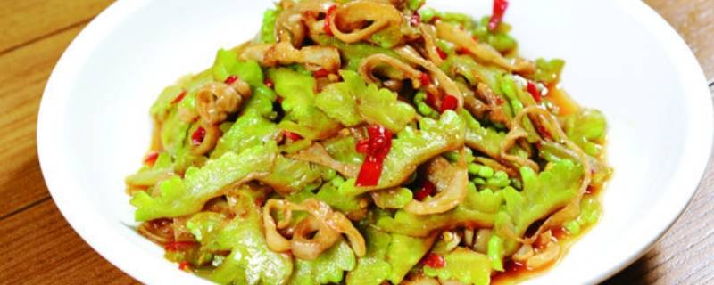6、加入苦瓜翻炒几下,放盐调味起锅装盘即可。