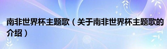 大家好,小夏来为大家解答以上的问题。南非世界杯主题歌,关于南非世界杯主题歌的介绍很多人还不知道,现在让我们一起来看看吧!