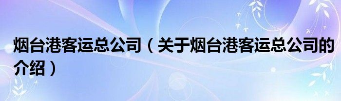 大家好,小夏来为大家解答以上的问题。烟台港客运总公司,关于烟台港客运总公司的介绍很多人还不知道,现在让我们一起来看看吧!