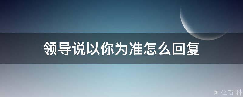 领导说以你为准可以回复感谢领导的信任和支持,或者用更具体的语言表达感激之情。也可以回复领导请放心,如果还有什么问题使领导不放心,我会及时回报这项工作的进程。无论选择哪种回答方式,都要确保你的态度诚恳、真诚,并且与你的意见相符。